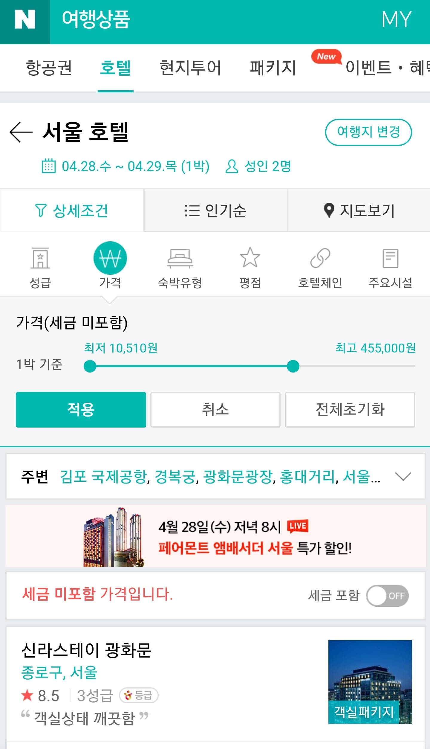 모텔이나 게스트하우스도 검색됨 걍 호텔찍은거지 근데 저가형호텔이 모텔보다 낫더라 가격도 차이안나고