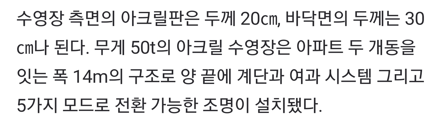 아크릴은 모르겠고 기본적으로 철근 들어가는 콘크리트 슬랩도 250mm 부터 시작하고 우리가 수영장 지을땐 특히 더 튼튼하게 짓는거 고려해봤을때.. 고 뭐고 엔지이어들이 다 계산기 뚜들겨보고 될만하니깐 했겠지