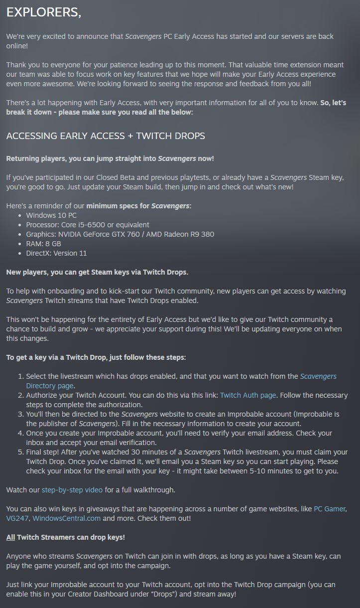 얼리액세스 참여방법은 이 겜 드롭스 연결된 트위치방송 30분 보면