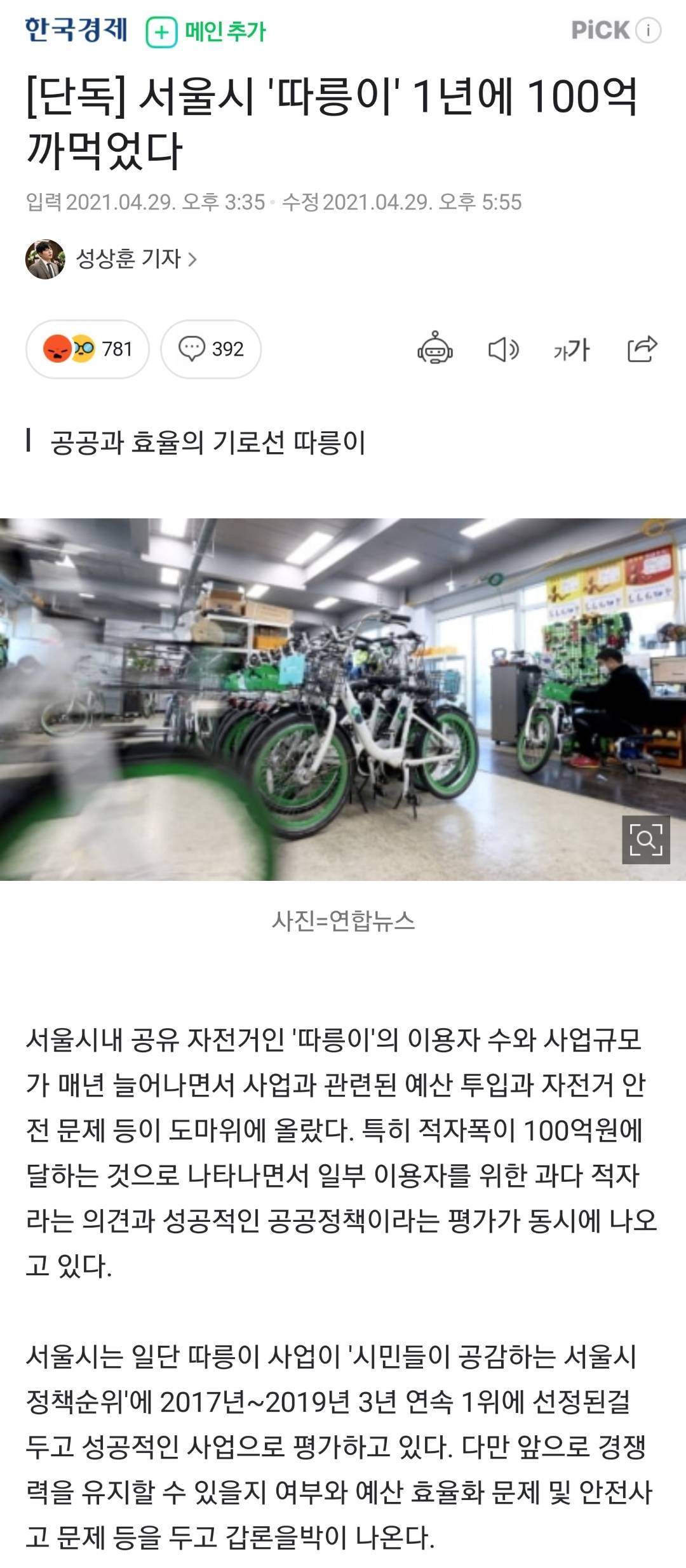 난 따릉이 일주일에 한번정도쓰는데.. 이게 문제가 엄청나게많아 다 굴리는업체덕분에 굴러가는거겟지만..