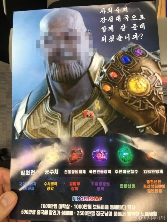 밑에 핑거 스냅은 그냥 조크잔아 저건 타노스 패러디니까 2500만 사라진다는 거 농담식으로 쓴 거라 저거 사실이라고 믿는 사람 없잔아