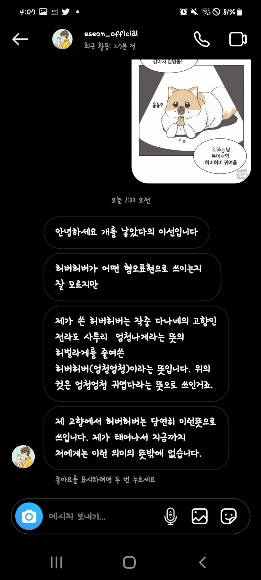 허벌라게는 많이 쓸건데 허버허버는 글쎄다 허벌라게가 익숙해서 허버허버도 비슷하게 생각했나? 모르고 썼으면 그냥 잘못 인정하고 넘어가면 될 문제 같은데