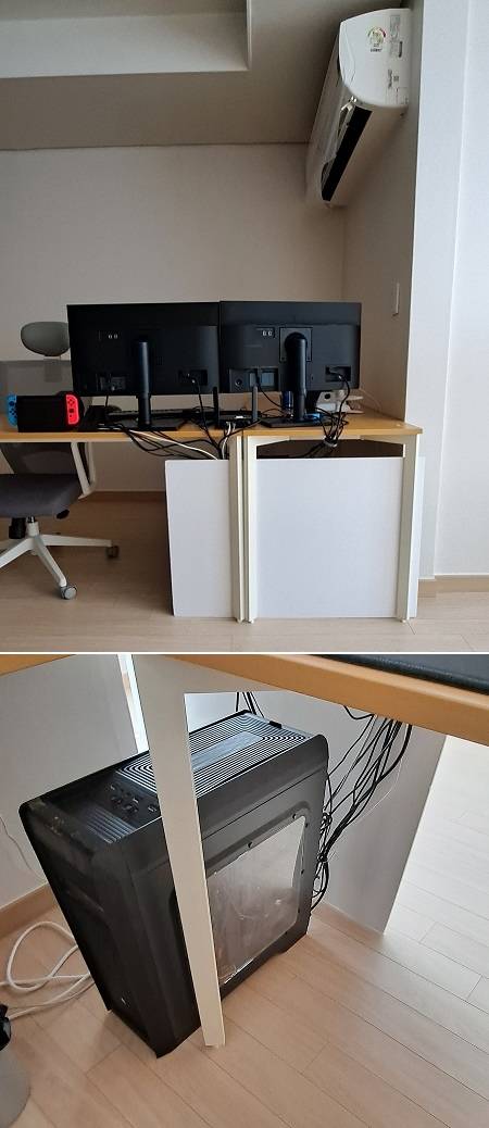 그러면 선 땡기고 모니터 움직이고할때 걸려서 걍 안묶음