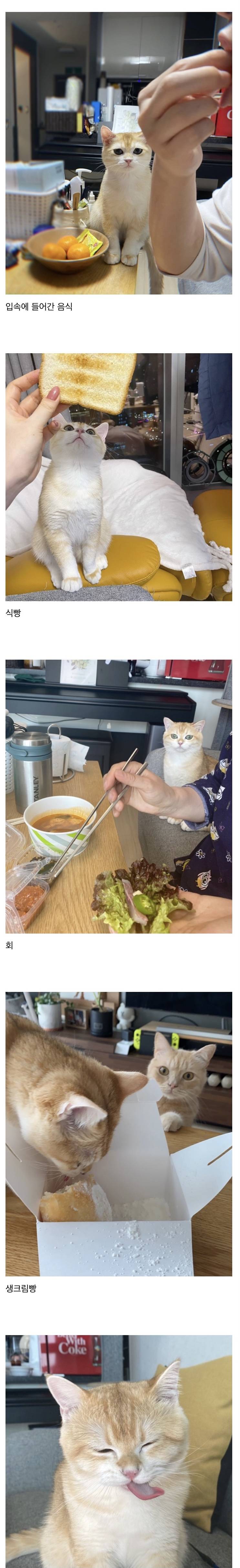 고양이는 단거 안좋아하지않나? 일단 집사가 먹는건 탐내고 보는건가