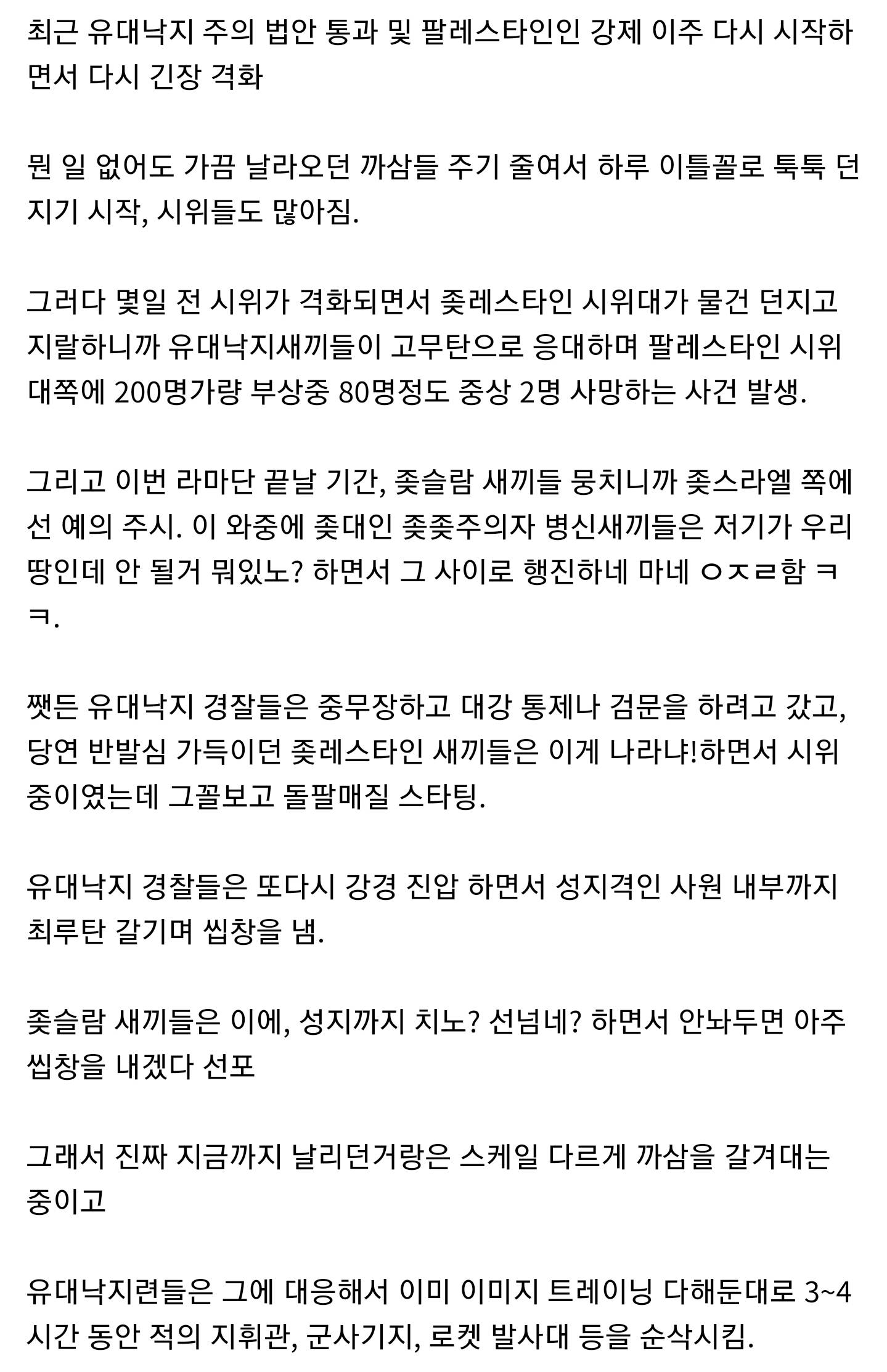 중간에 좆대인 좆좆(유대 민족)주의자가 있어서 배경없으면 모르는 단어가 되긴하겠지만