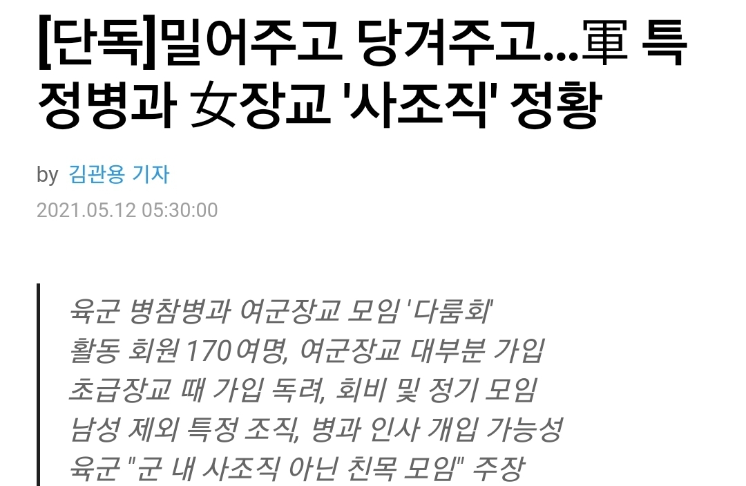 하나회 작살내고 군 사조직 없애버린건 잘한거지 안그랬으면 군사정권 또 생겼을지도 모르는데 여가부 만든 새끼가 문제인거지 이게 문제가 아니잖슴?