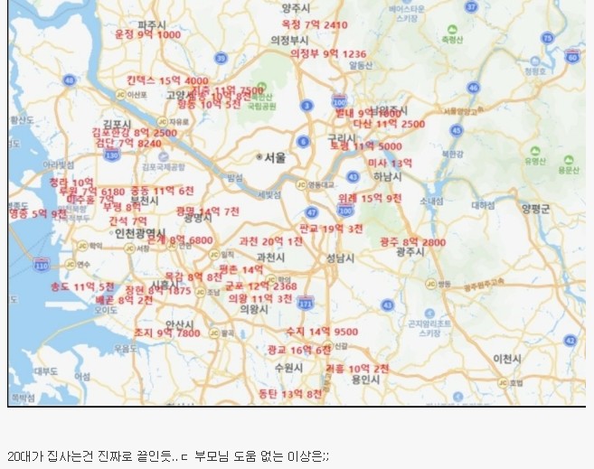 아니 아저씨;; 집값이 비싼 건 사실이긴 한데 그렇다고 각 지역 대장아파트만 올려놓고 집값 타령하면 어쩜?;; 그리고 이거 옛날 자료인게 의왕 대장아파트 16억 뚫었어.