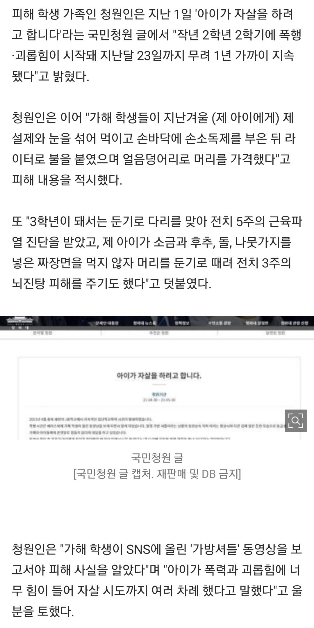 이런 사건들 생각보다 많을텐데 아직 또라이가 안나와서 그럼, 자기 자식이 당했으면 찾아가서 가해자들 전부 목따거나 병신만드는 아버지가 하나 나와야 본보기가 될텐데.
