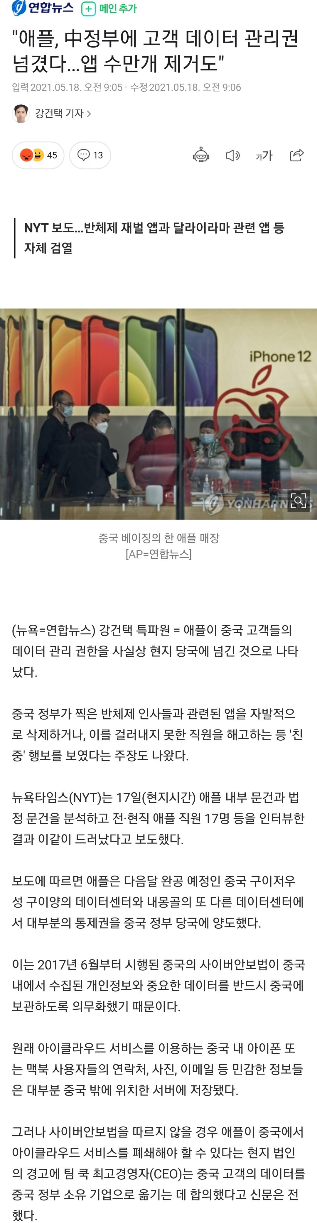 애플빨 믿고 아이폰으로 중국내에서 미친짓하던게 막힘