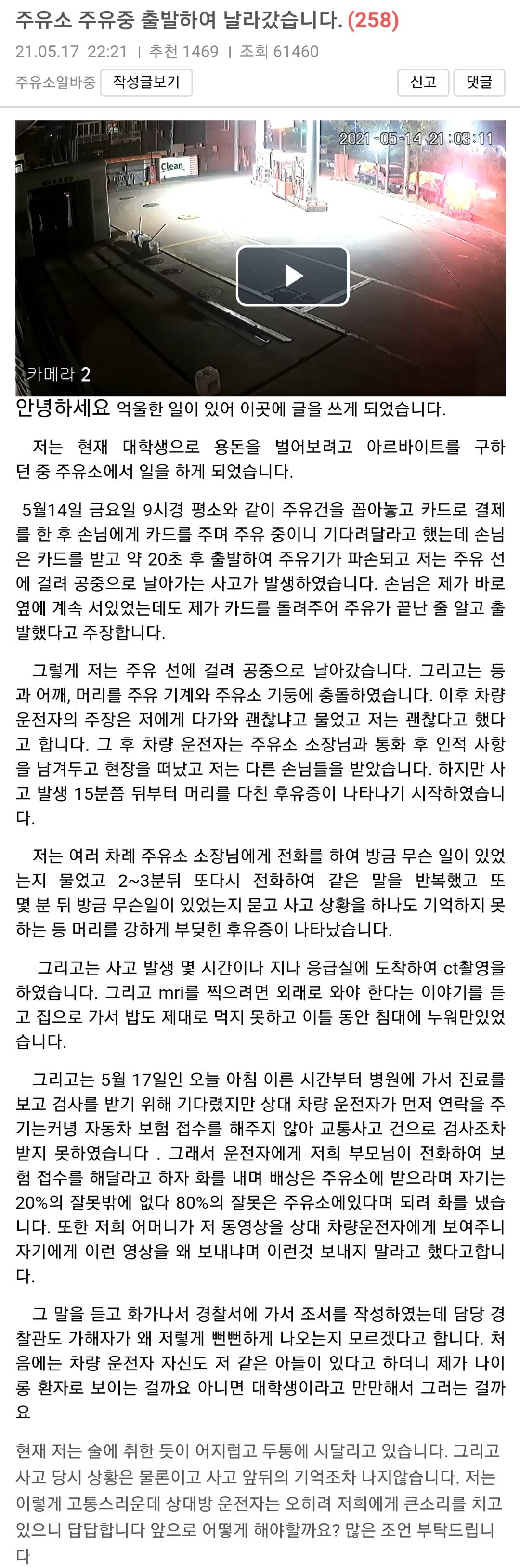 주유중 시동도 안끄고 주변 확인도 안하고 출발이라니
