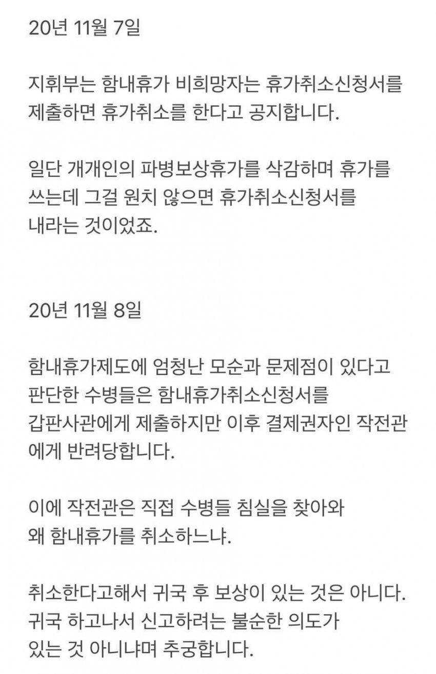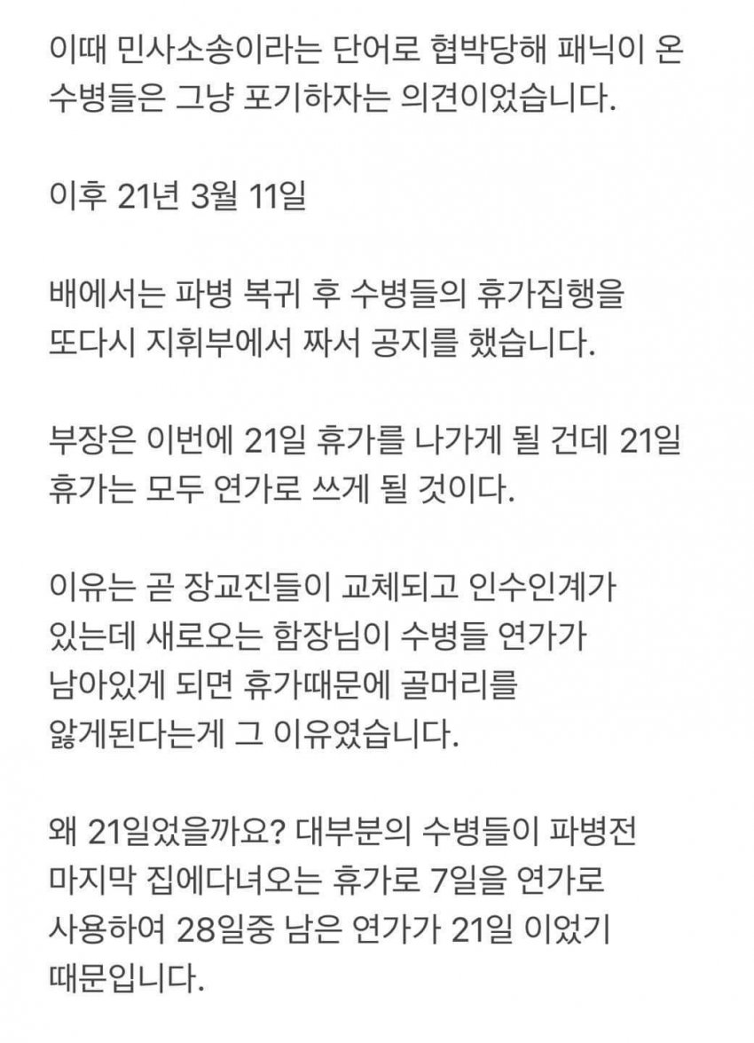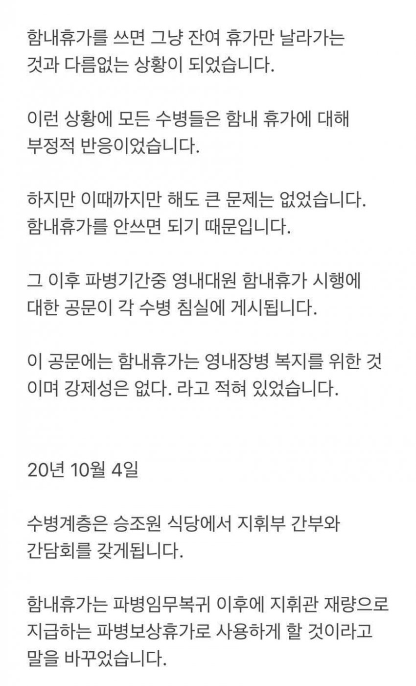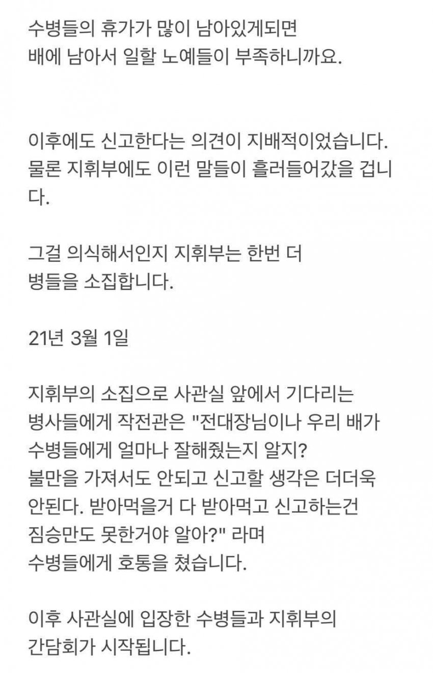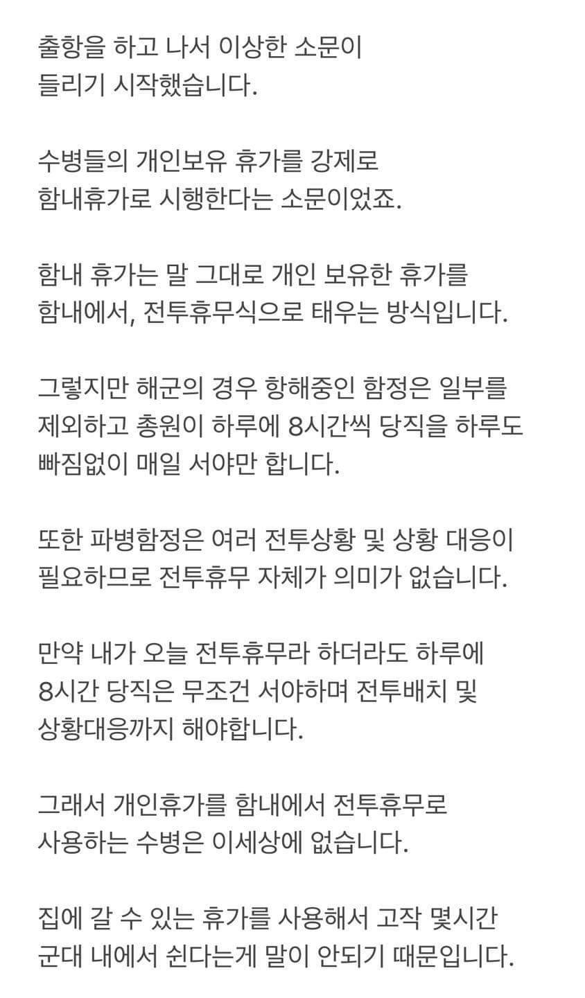 파병가서 고생하는 애들 휴가를 함장을 비롯한 간부새끼들이