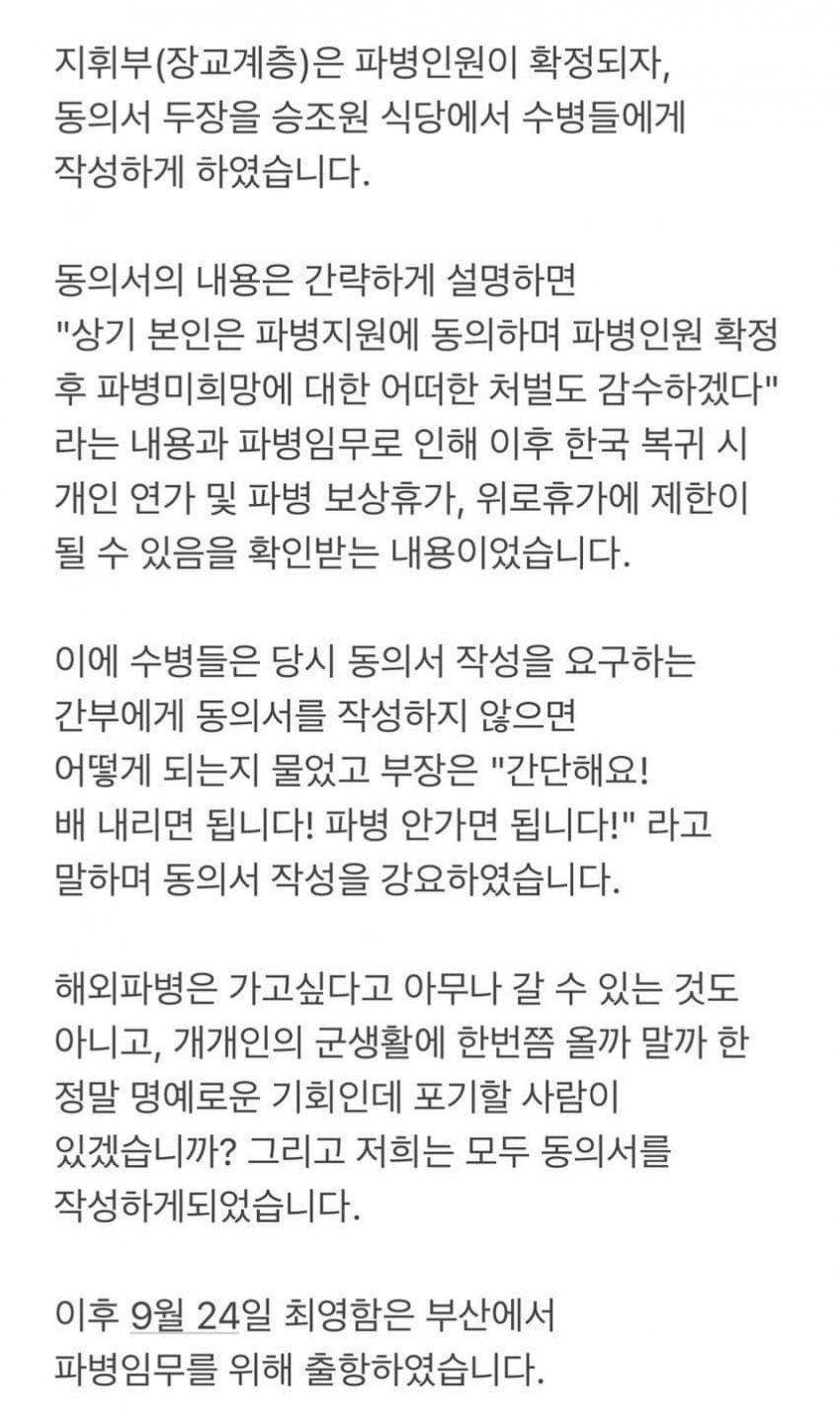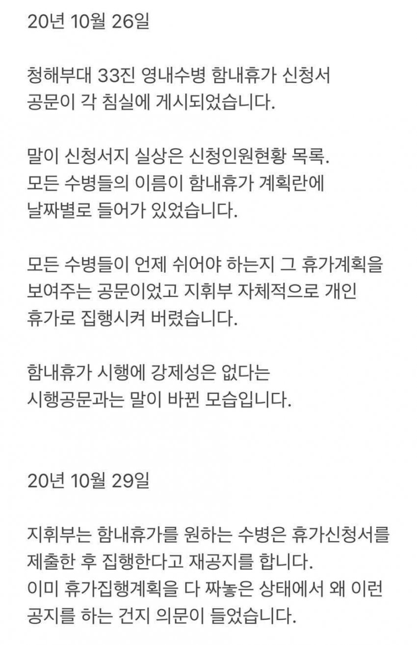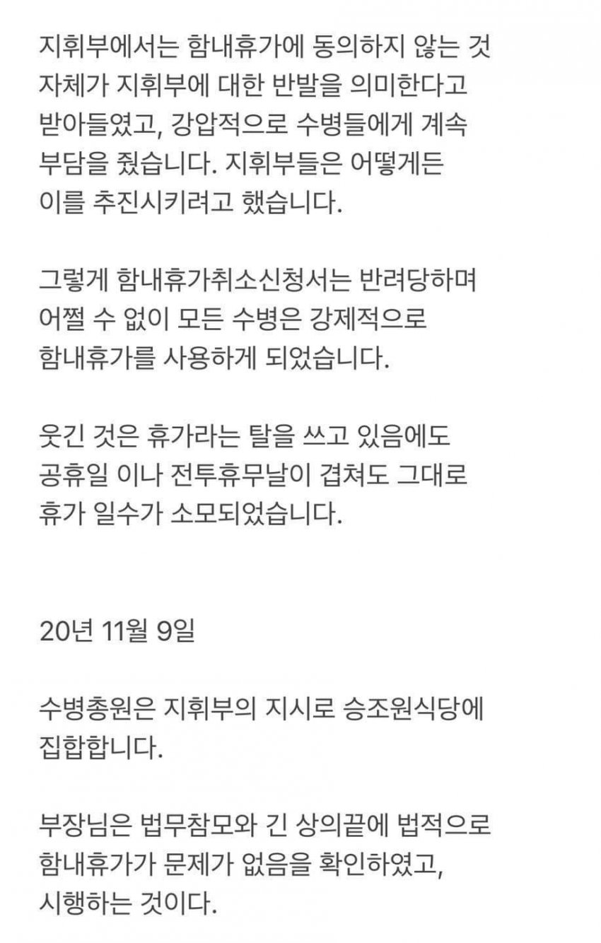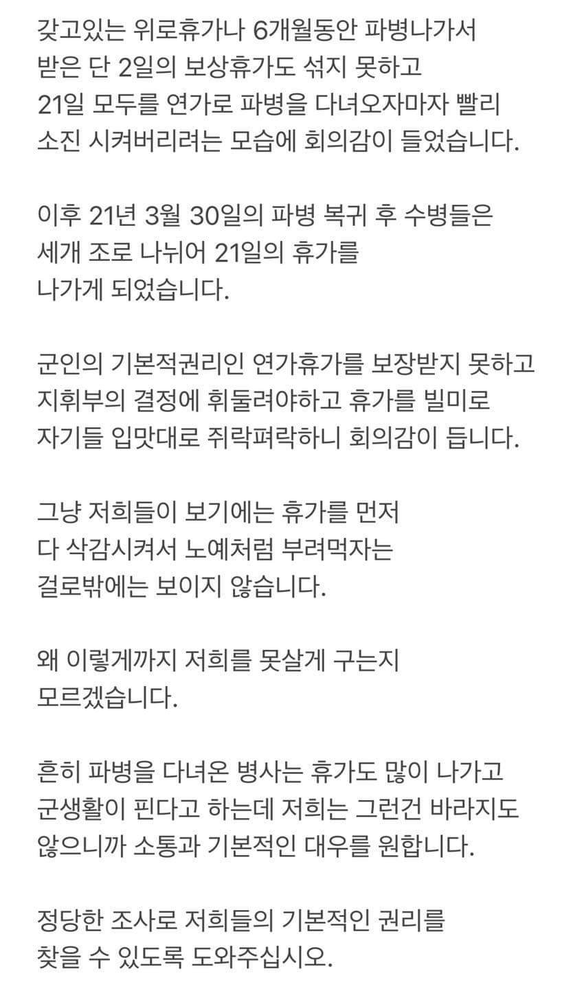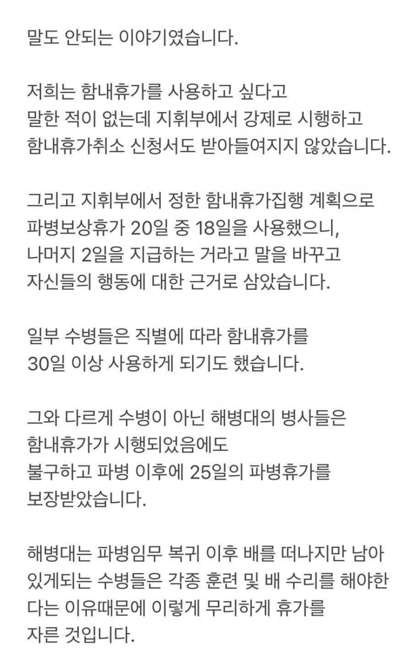파병가서 고생하는 애들 휴가를 함장을 비롯한 간부새끼들이