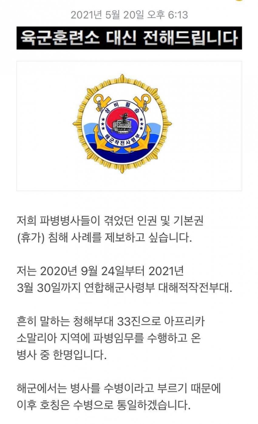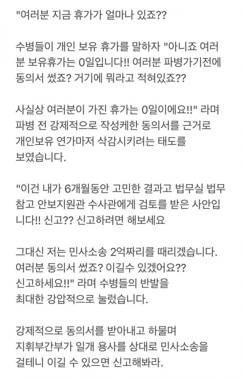 해병대도 똑같을걸 안밝혀저서그렇지 적어도 너는 당당한걸보니깨끗한가보넹 그맘 변치말길 바라 그것관별개로 합리적인 의심이 생길수밖에 드러나지않은 수많은 비리나 가혹행위등이 있어왔고 또 당연시여기는 병사의적은 간부인이유가 한두개가아니니까
