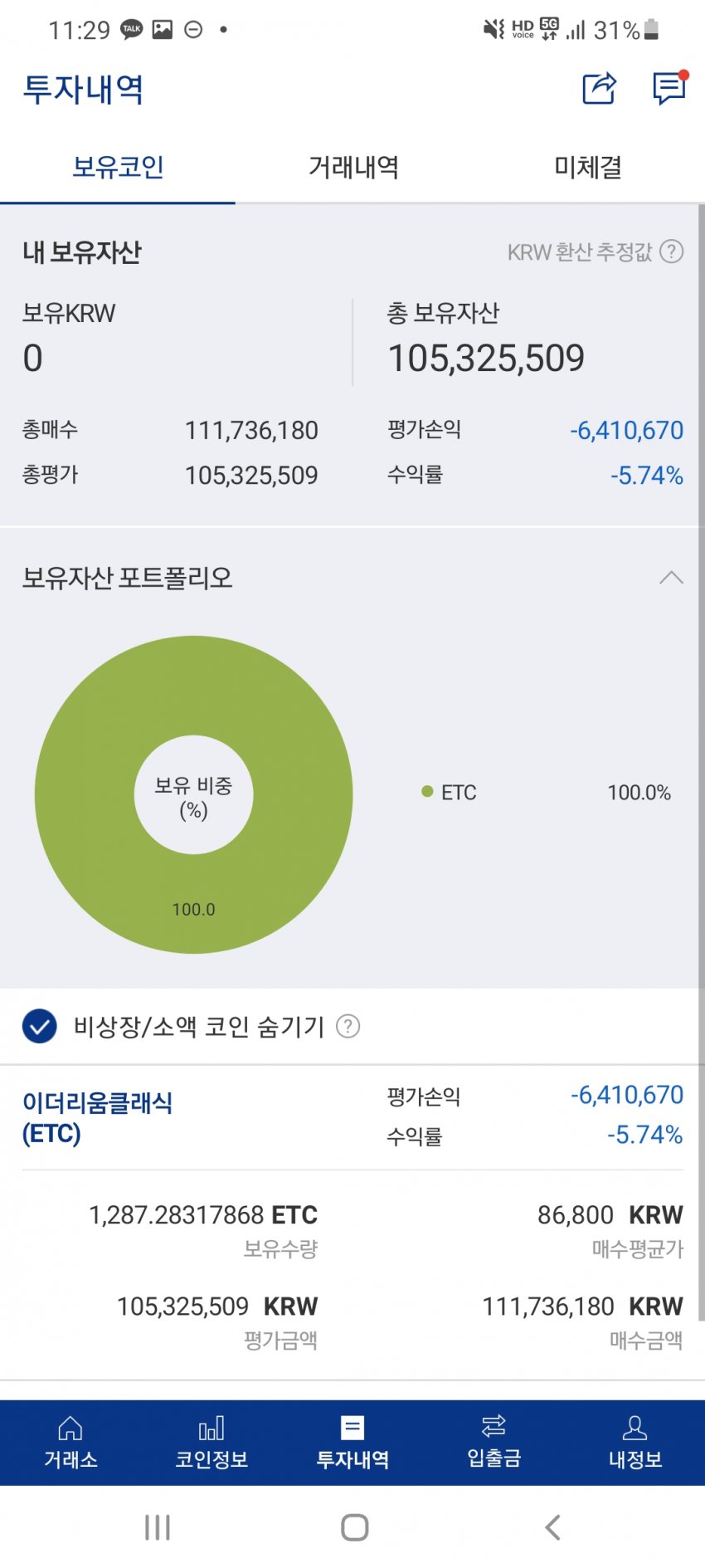 4. 씹 손절한거 정신못차리고 또 코인에 남은 1억 쳐넣음