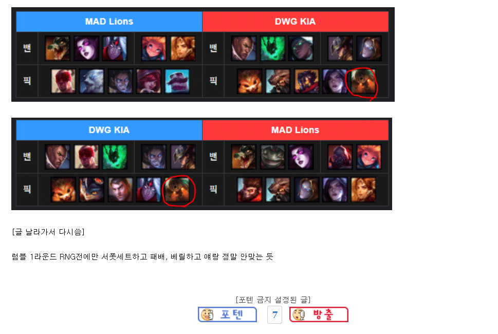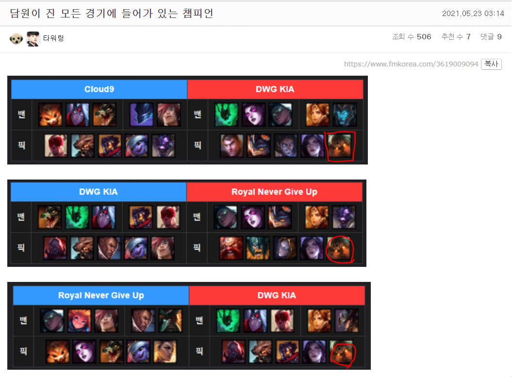 남은 하나는 상대였던 rng에서 노틸 쥐고 있었음.