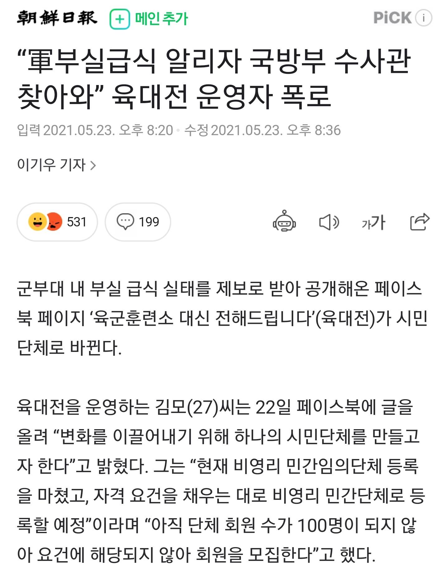 부실급식 폭로해서 기밀 누설되어 그런가 씹새끼들아