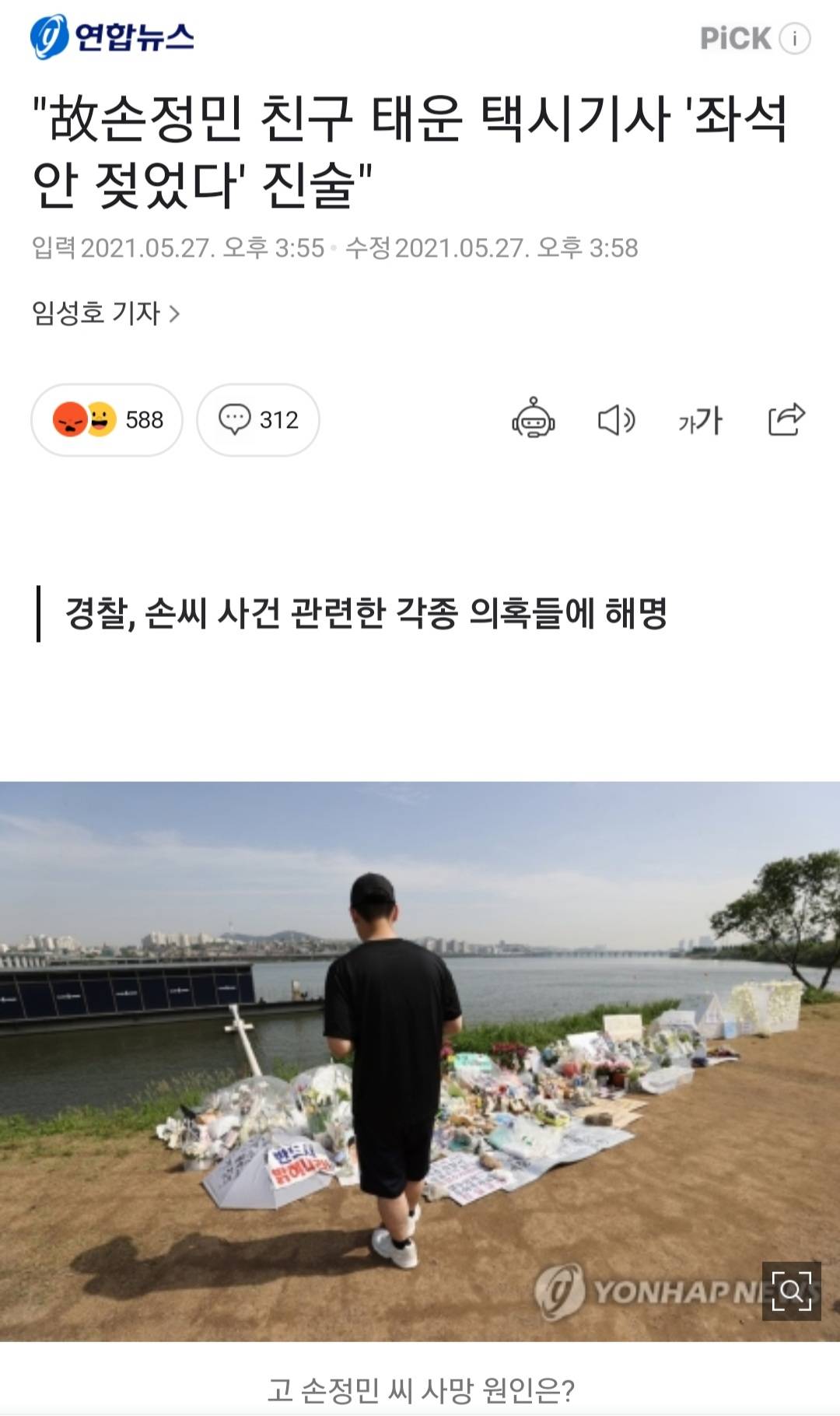 친구가 손정민씨 물에 빠트리고 옷이 물에 젖은 상태로 택시를 탔을 것이고 현금 계산한게 수상하다라고 했으나 해당 택시기사는 젖지 않았다고 진술