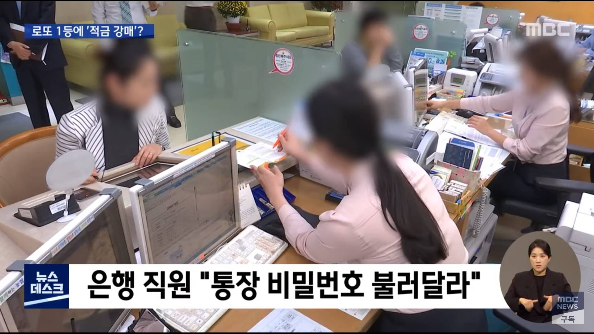 통장 비밀번호를 본인이 단말기에 직접 입력하는 것이 아닌 직원이 말로 불러달라함 (당시 1등 당첨금은 43억원, 세금 제외 29억원에 달해)