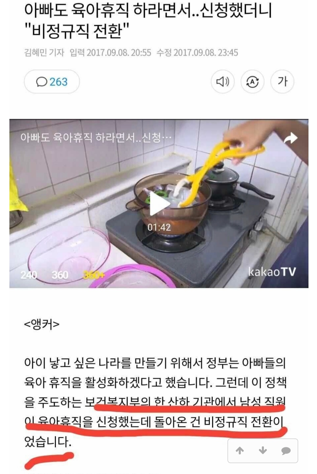 2016년 5월 육아휴직 의사를 밝혔더니 황당한 답변을 들었습니다. 비정규직 전환을 조건으로 내건 겁니다.