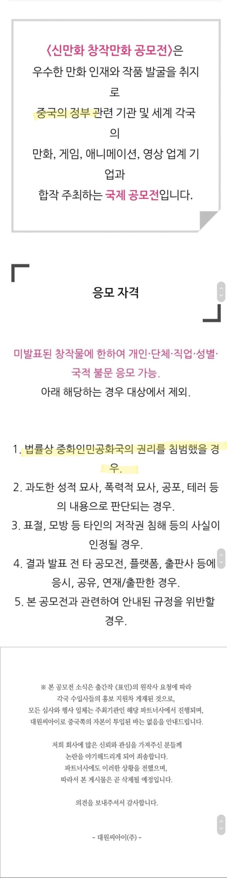 중국 욕하는 내용 그리면 용납하지 않겠다고 함