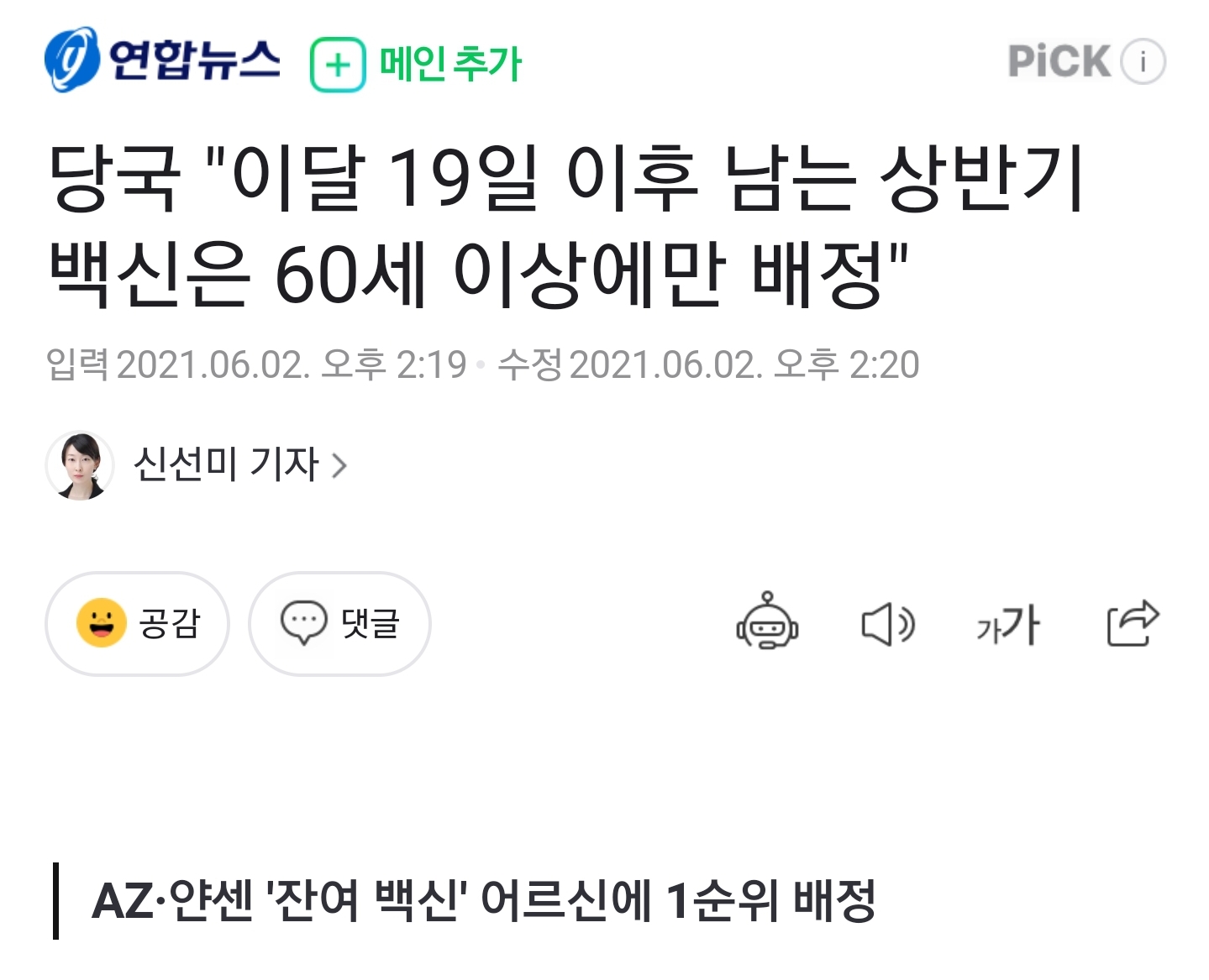 20대 미만은 모더나 화이자 고정일걸 근데 치사율이 너무 낮아서 사실 별 코로나 걱정이 없기도 하고