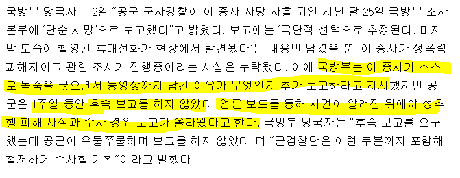 자초지종을 알아야되니 공군에게 파악해서 보고 하라고 했으나