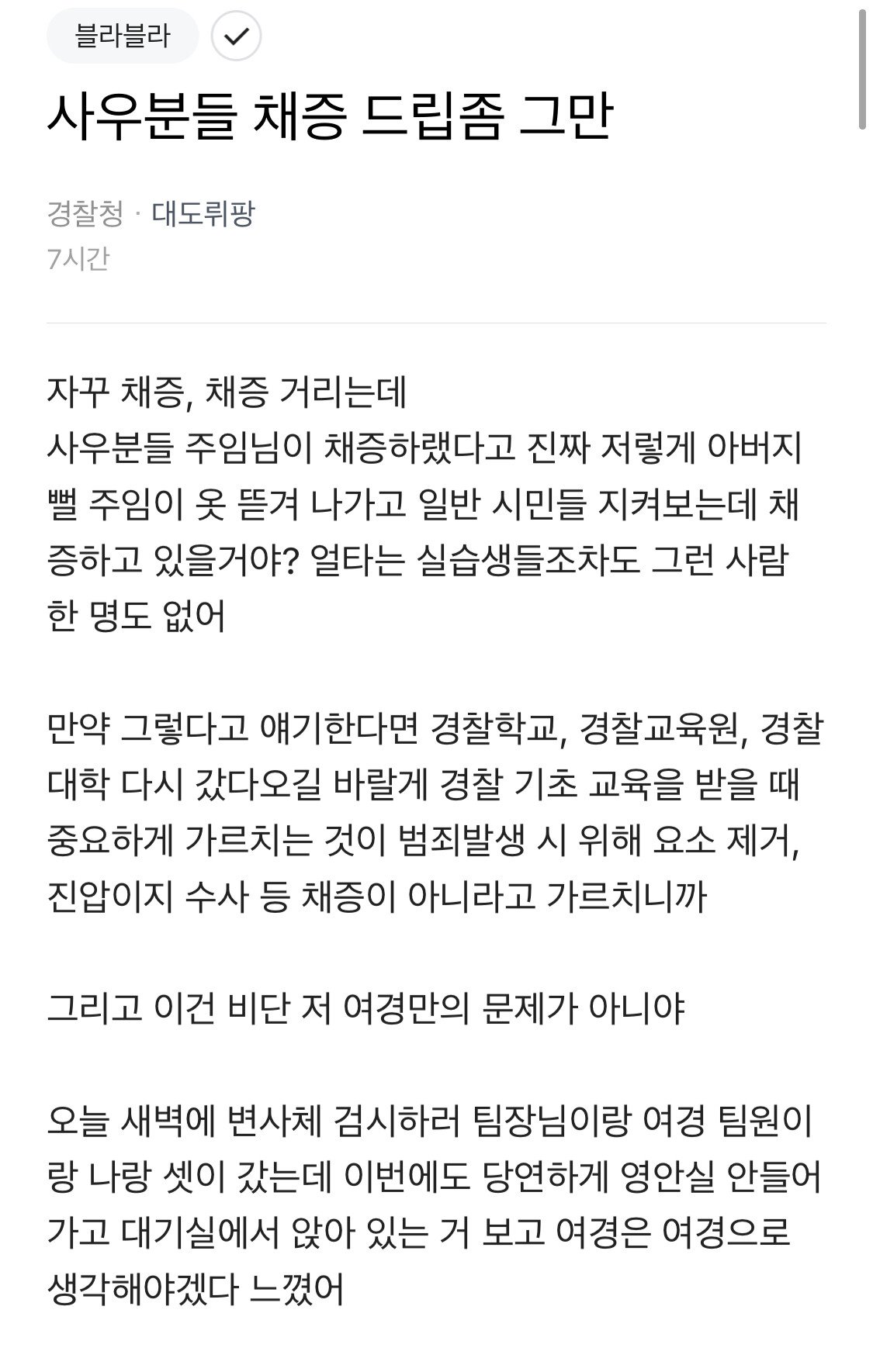 건조하고 딱딱한 느낌의 바디캠보단 여경 쓰는게 더 따뜻하고 인간적이잖아