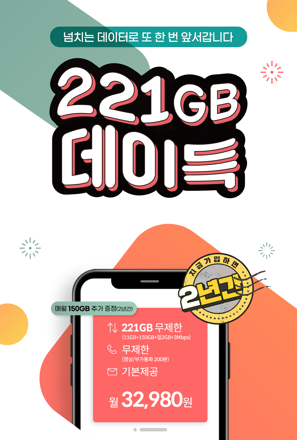 한달 3.2만원에 11기가 + 매일2기가 + 이후엔 3메가비피에스