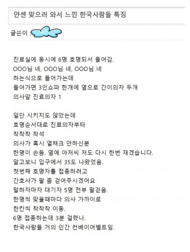 근데 난 9시에 도착했는데 9시40분쯤 맞았다.. 소아과라 그런가 첫타임에 예방접종 맞으러온 애기들 많았고 아스트라제네카 맞으러온 할배들 + 얀센아저씨들 다 섞여서