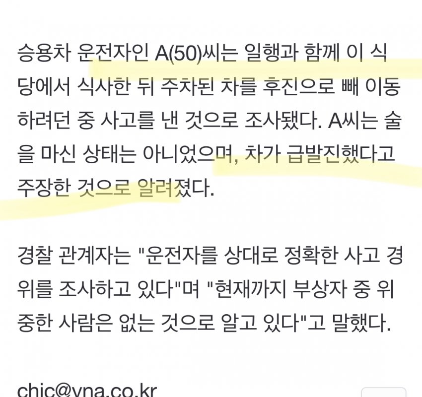 방금 뉴스에 나왔는데 운전미숙이라고 시인했다던데?