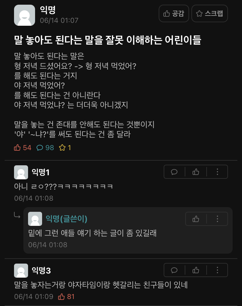 말놓으라는데 호칭까지 놓는건 그냥 상식미달인데