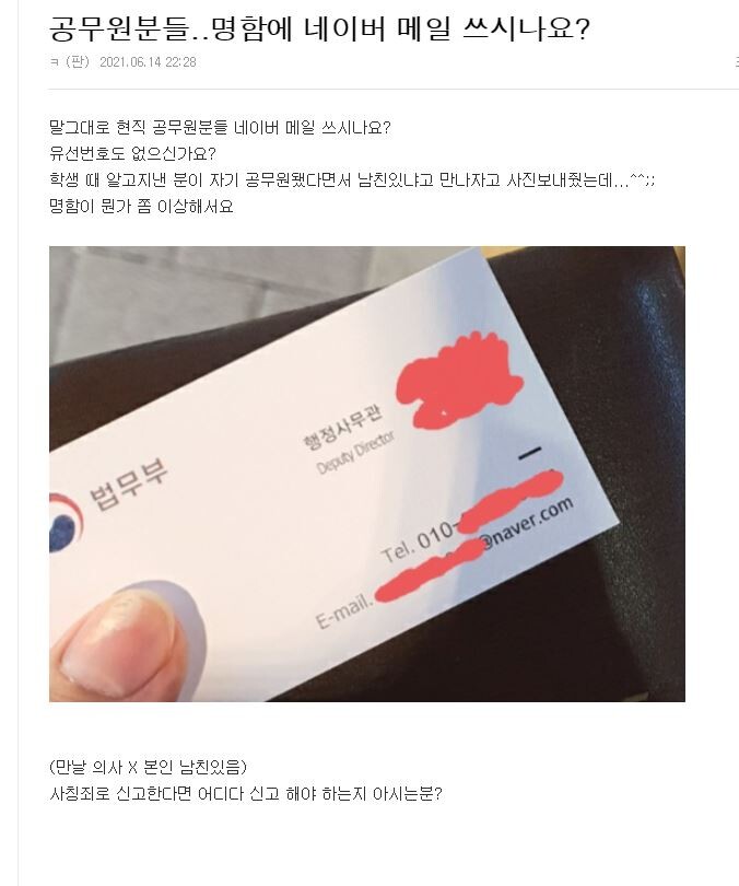 그리고 공공기관 명함이면 소재지주소 유선번호 다 써있어야되는데 것도 없고 ㅋㅋ