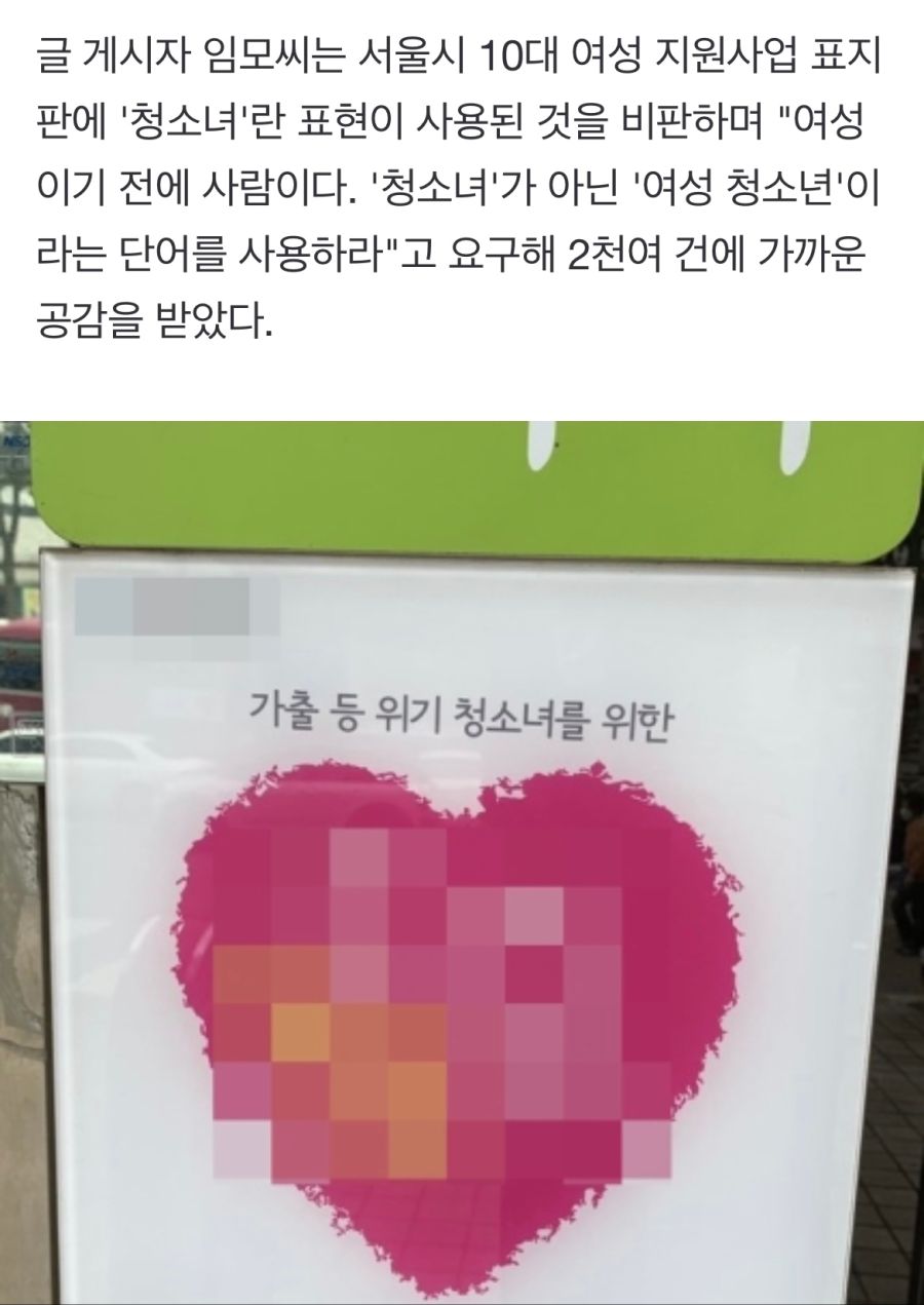 청소하는 여성이냐며 여혐단어라면서 쓰지말고 여성 청소년이라고 바꾸라는 중