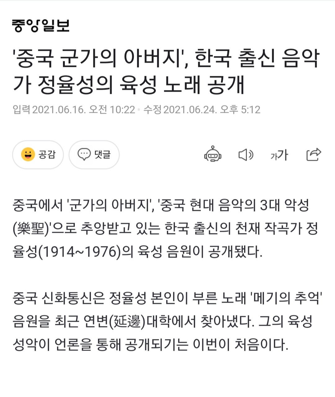 중국 공산당에 입당하고 활동한 조선족 음악가면서 중국 공산당의 100대 건국공신 중 하나