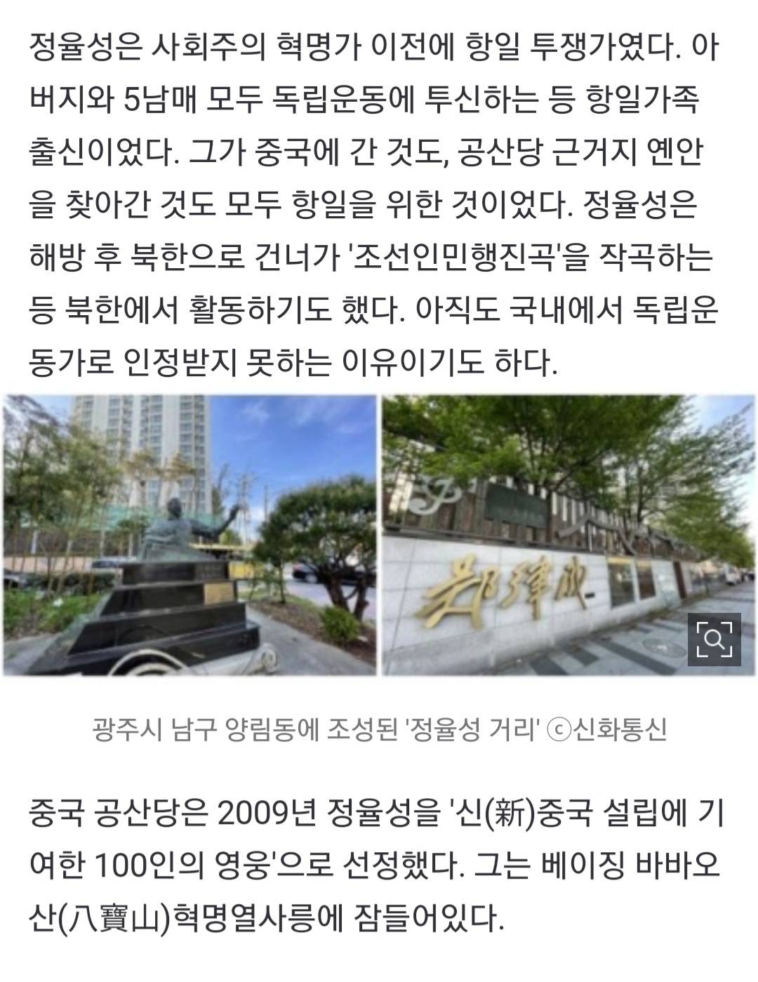 그리고 시에서 이를 기념하는 각종 행사나 기념사업은 다른 건 차치하더라도 항일 운동한 업적만 보고 해주는거겠지?