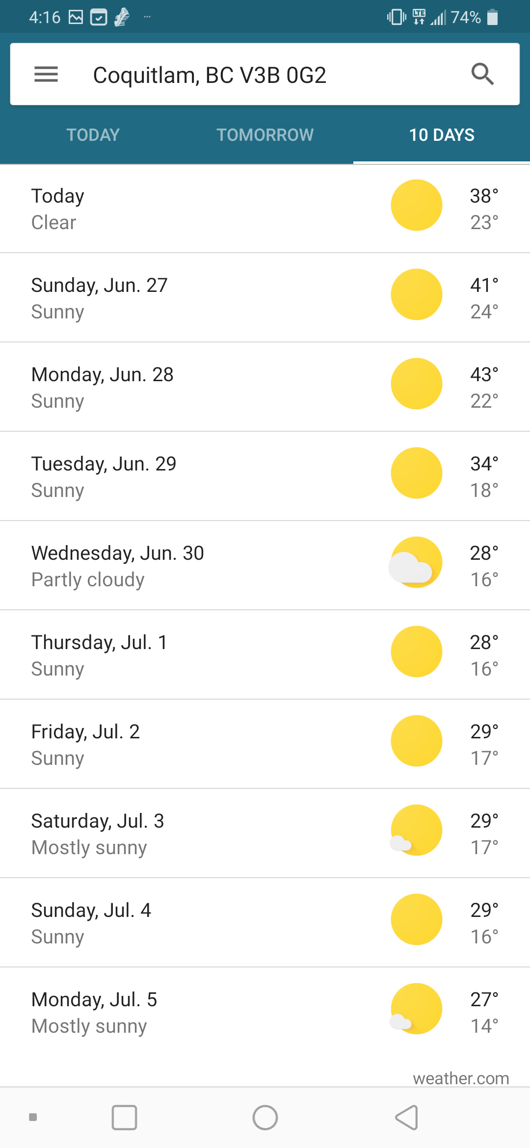 캐나다와서 처음으로 40도 넘어간다