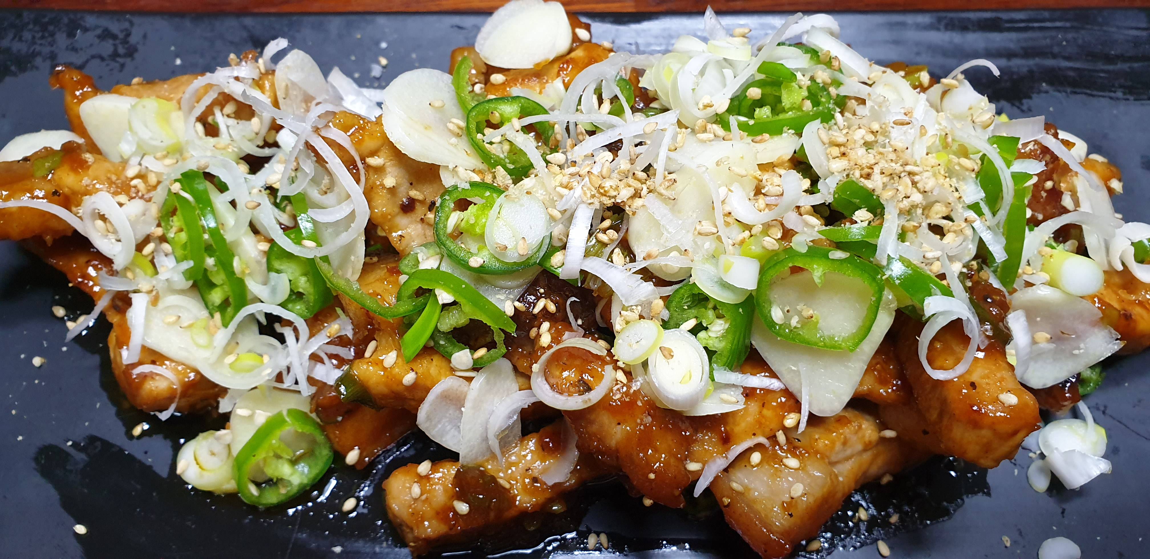 공격수쉡 단막장삽겹 맛있더라 레시피대로하니 단맛이 강하긴한디 단맛 소스랑 생마늘 청양고추가 엄청 잘 어울려