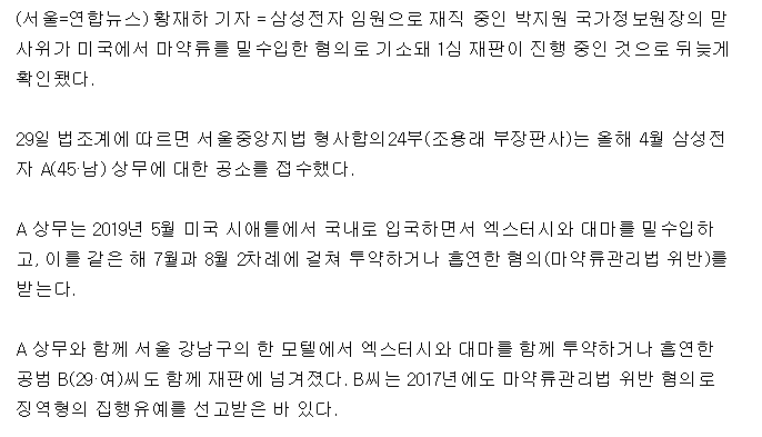 알고보니 박지원 국가정보원장의 맏사위...1심 재판중