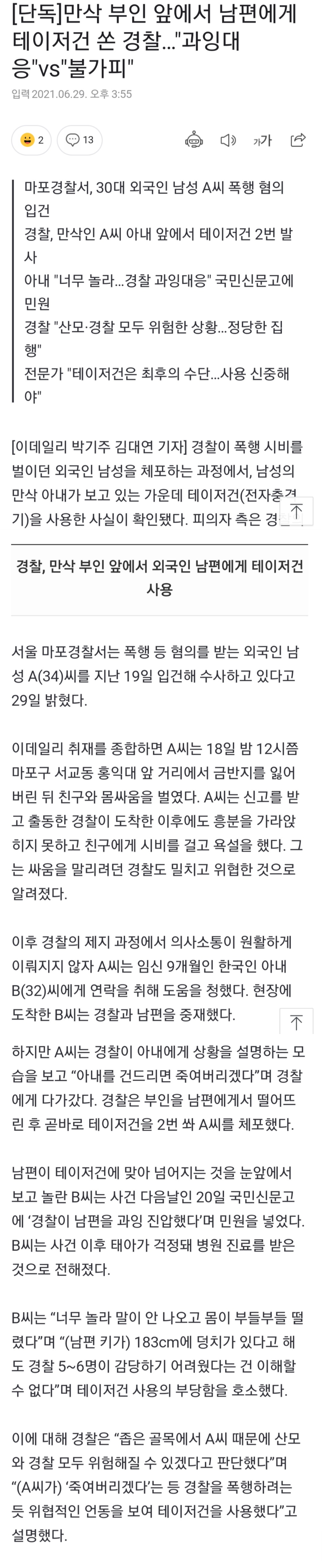 6. 한국인 아내. 온몸이 부들부들.. 과잉진압 민원