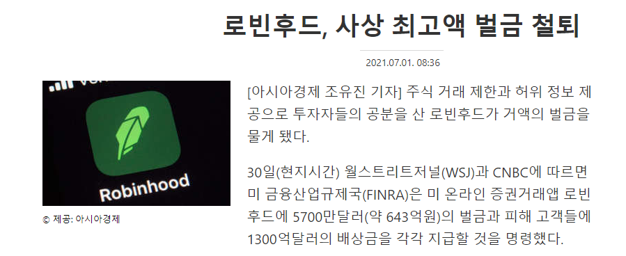 미국은 이런게 너무부럽다 잘못한게있다면 당연한처벌. 저거 우리나라였지?과징금 1억 땡이다 삼성증권 사태봐라 저거보다 더한 유령주식사태터졌는데 과징금 1억8천에 임직원 강당모여 반성문쓰고끝난 나라다 신뢰가없어 이족같은나라는