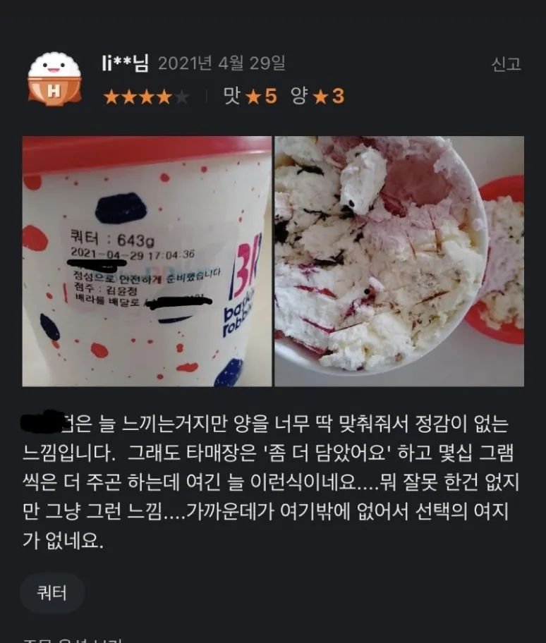 정량줬다고 별2개뺌ㅋㅋㅋ