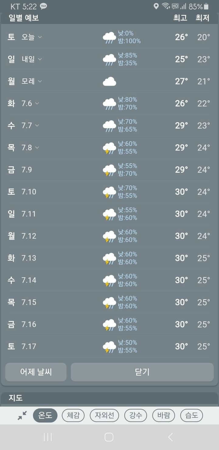 요즘 일기예보 그냥 대충써놓고 실시간으로 바꾸는 느낌임