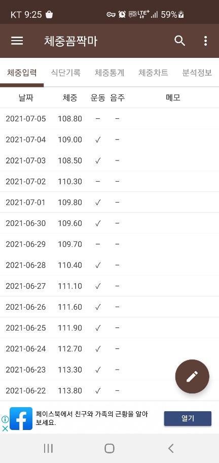 한동안 횡보하던 몸무게가 다시 빠질 조짐을 보이기 시작했다