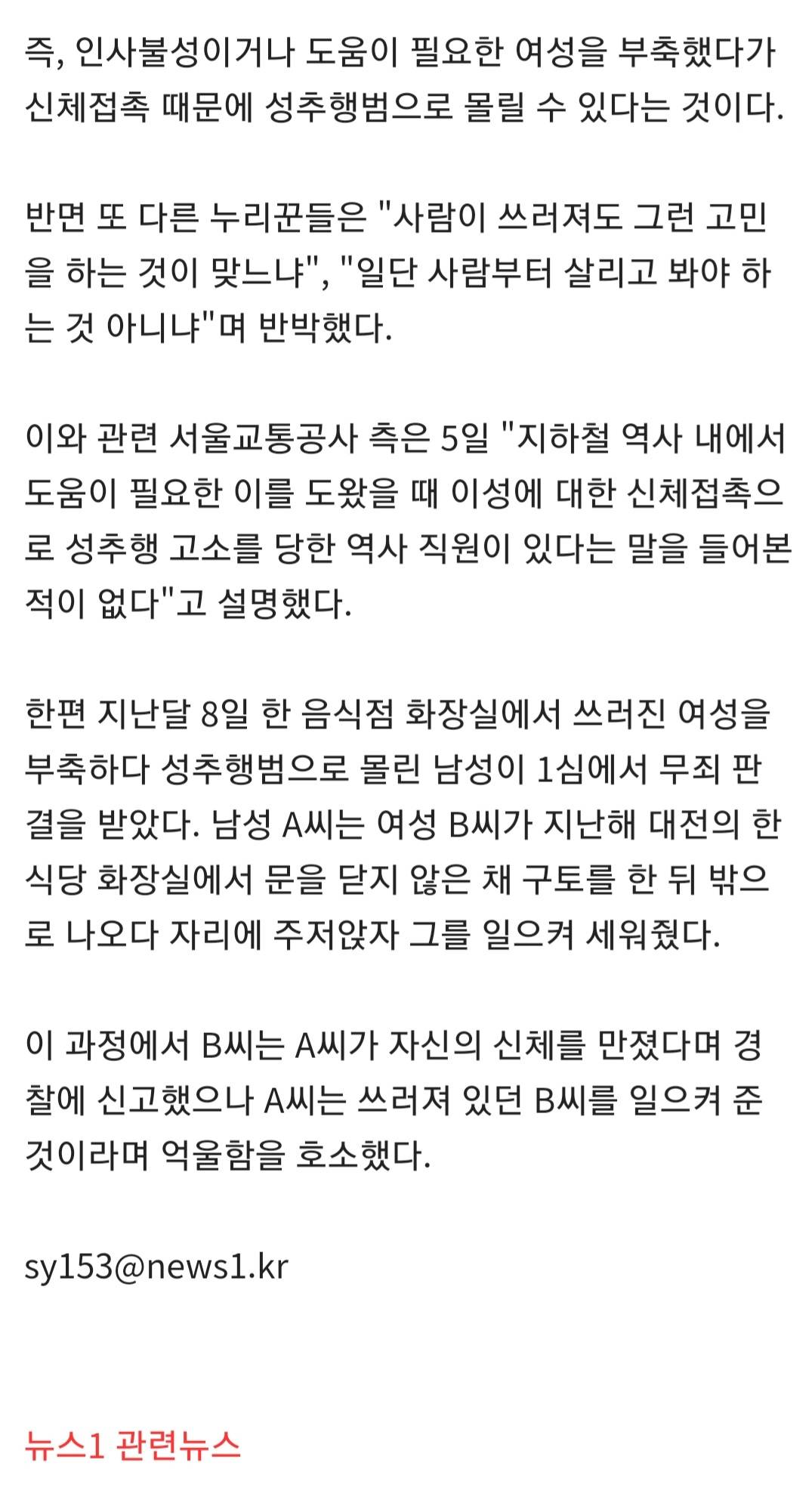 한남 경찰도 여자 건드리면 성추행했다고 욕처먹는 시대임
