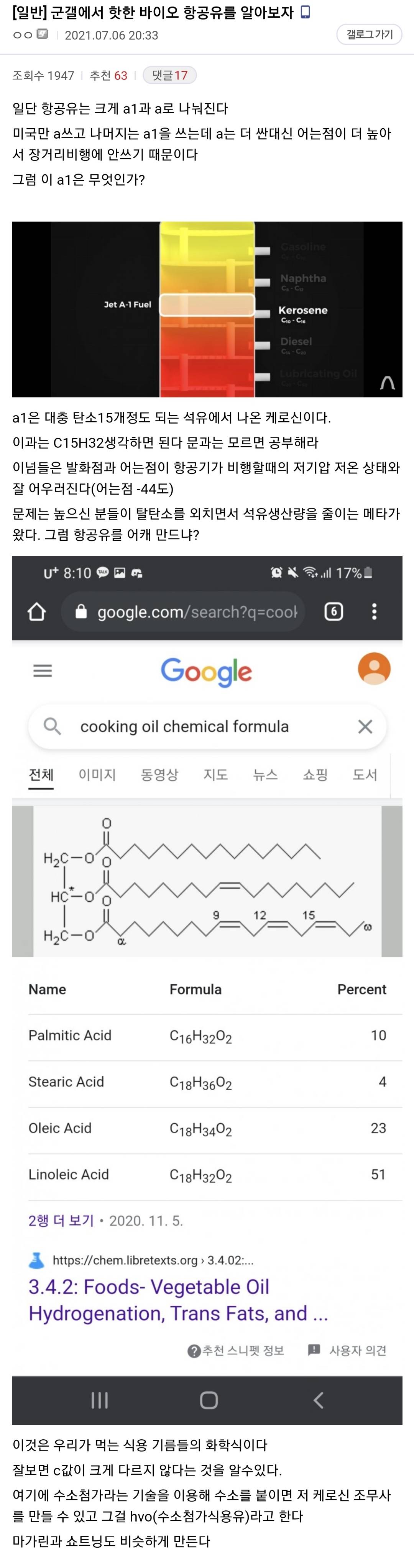 팜유로 95퍼 카카오버터 동등제품 만드는 기술도 있는데 항공유라고 못만들까 순도차이지