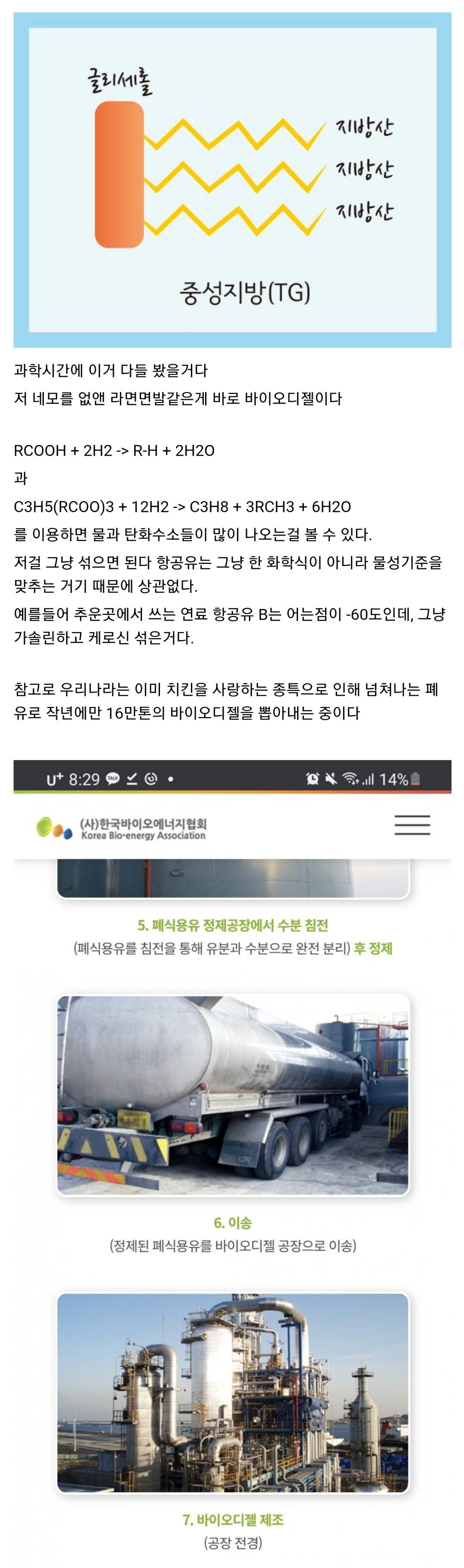 결론은 치킨 먹으면 그 폐유가 항공유 원료가 되니