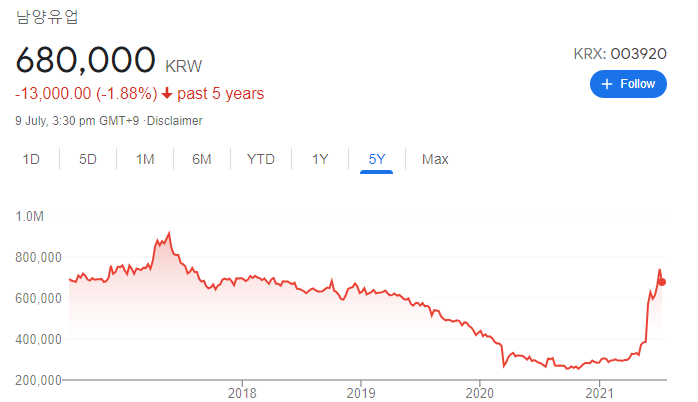 남양 불매로 존망한줄 알았는데 4월부터 주식 겁내 올랐네
