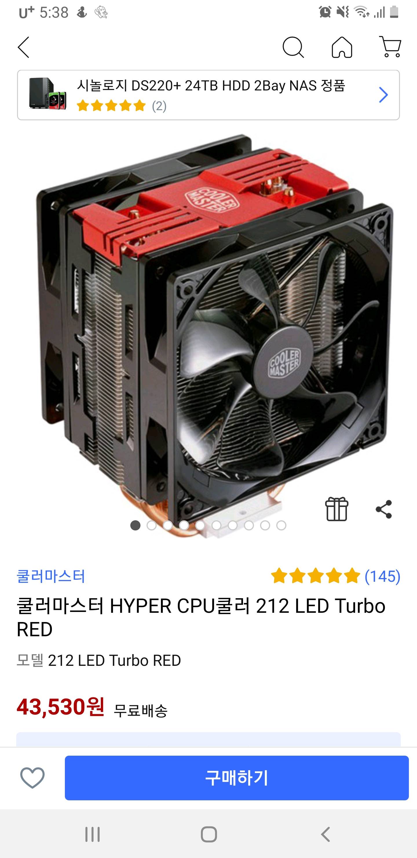2위가 잘만 CNPS9x OPTIMA. 이건 다나와 최저가보다 쿠팡이 천원가량 비싸면서 로켓 무배라 오히려 더 싼거 같고