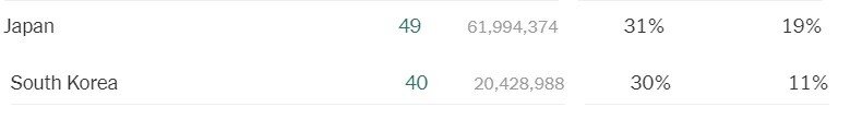 재들은 순도 100% 화이자 우린 대부분 아스트라제네카+얀센 쟤들 확진자 2400명 우리는 1600명. 인구2.4배인거 고려하면 일본으로 치면 3900명 "다시는 지지 않겠습니다" (실제로 한말)