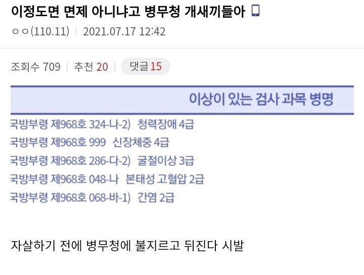 암환자도 끌려가던데 요즘 군대 미친듯